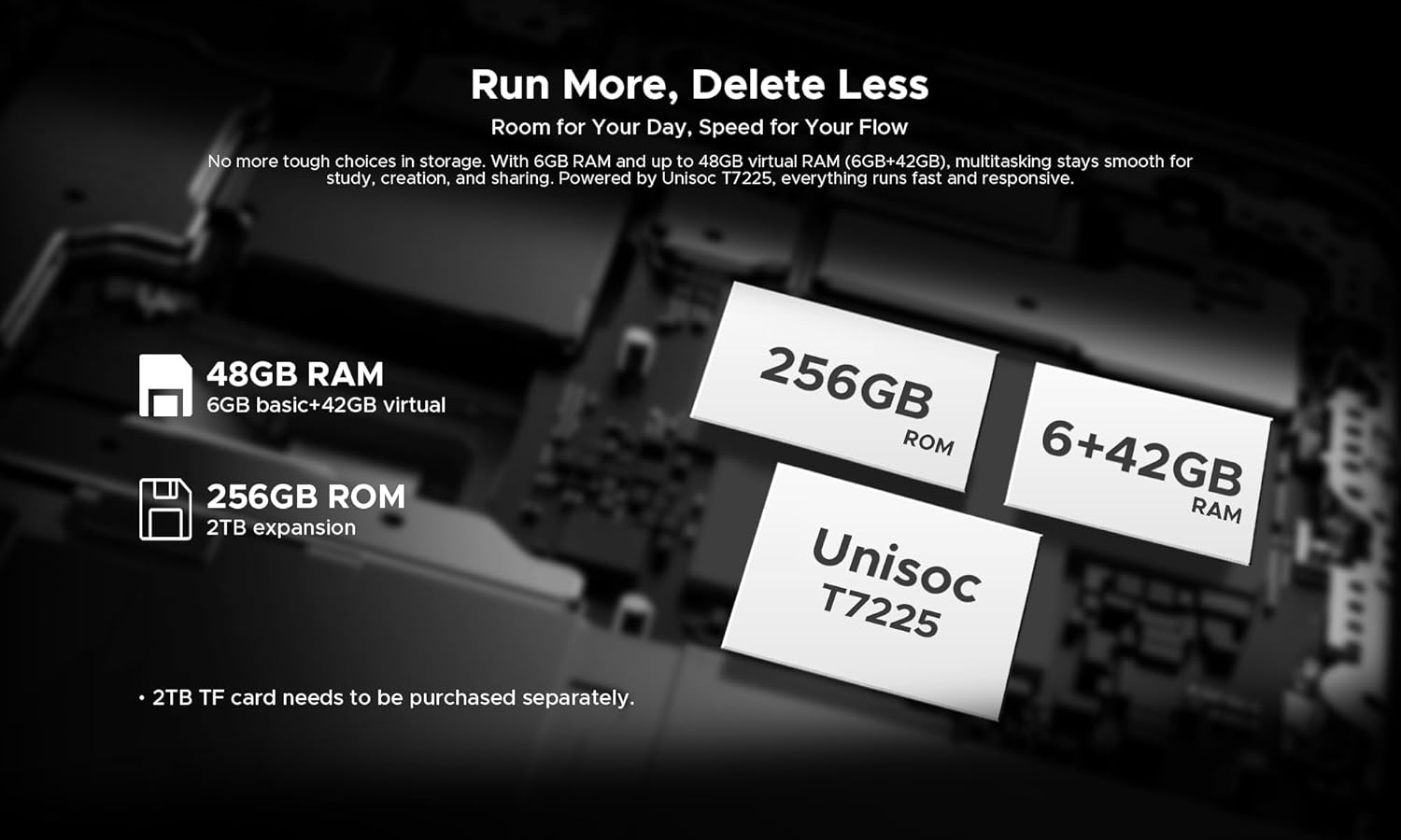 - Prozessor: UNISOC T7225 Octa-Core-Prozessor