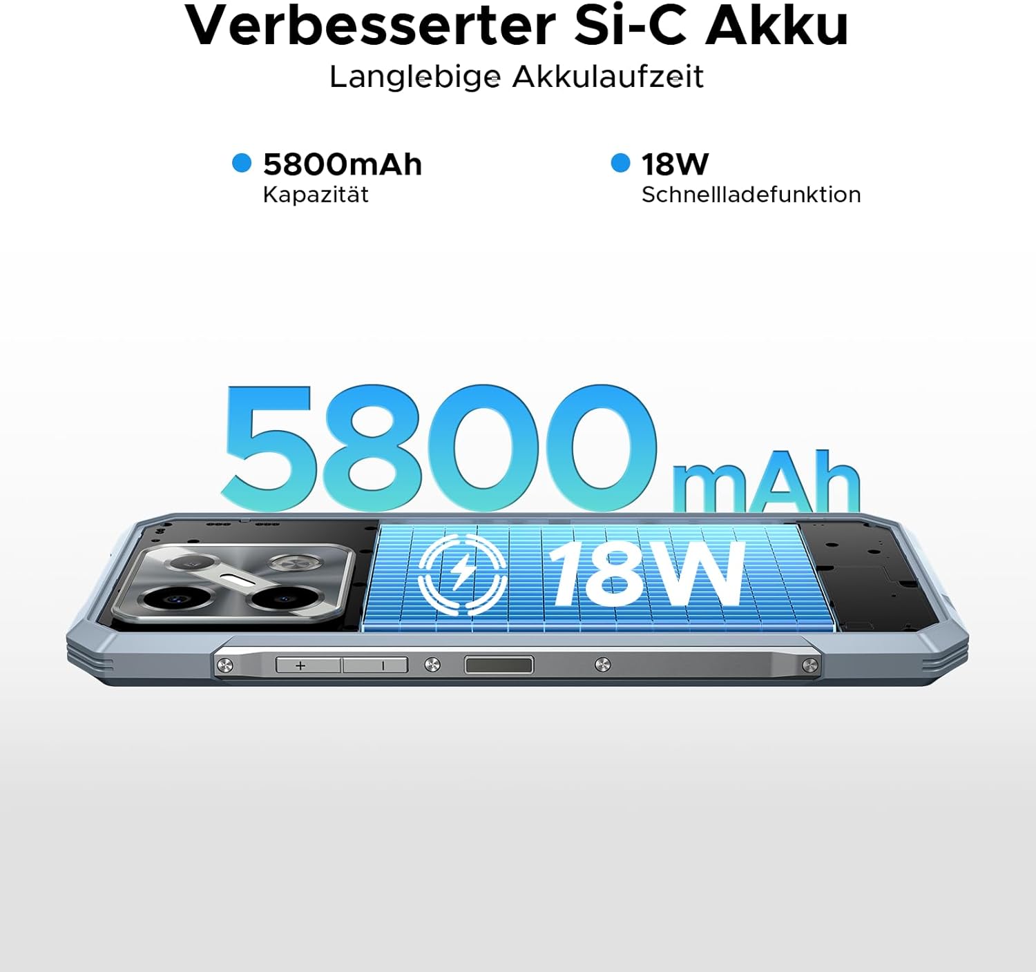 - Akku: 5800mAh mit 18W Schnellladen und OTG-Funktion