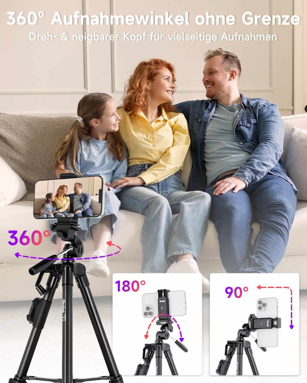 Ein wichtiger Aspekt des Rollei Smartphone Stativ Traveler ist seine flexible Ausstattung. Die beiliegende Smartphone-Halterung ist großzügig dimensioniert und kann auch die größten Smartphone-Modelle problemlos aufnehmen. Darüber hinaus verfügt das Stativ über eine Gesamttraglast von 2.000 Gramm, was es auch für den Einsatz mit leichten Kameras geeignet macht.